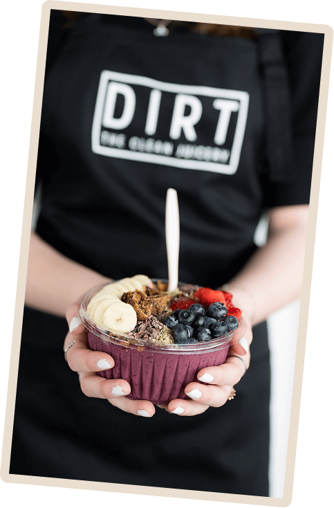 Started by two faith filled holistic nutritionists who believe that real food – God’s food – has the power to heal, energize and transform. DIRT was built on a mission to serve up more than just juice. They wanted to create a space where clean, ORGANIC ingredients meet spirit-filled purpose. With a whole lot of prayer, passion and plants, dirt became a place where people can fuel their bodies, feel seen and be a part of something life – giving.